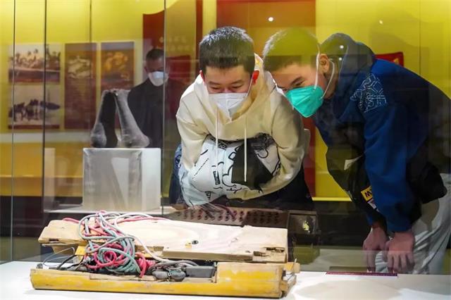 两位市民仔细端详中国国家博物馆馆藏的一件革命文物。融媒体中心记者 李华摄