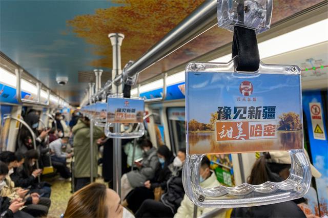 据了解,郑州地铁“哈密号”专列是河南对口帮扶哈密发展的系列活动之一。在河南省对口支援新疆工作前方指挥部精心组织下,郑州市充分利用郑州地铁窗口传播优势,自去年6月陆续启动6列“哈密号”专列,通过包车图片、地铁电视、语音广播、灯箱媒体、文创纪念卡等多种形式对哈密文化旅游、农副特产品等特色资源进行全方位宣传推广,将哈密风情融入地铁。