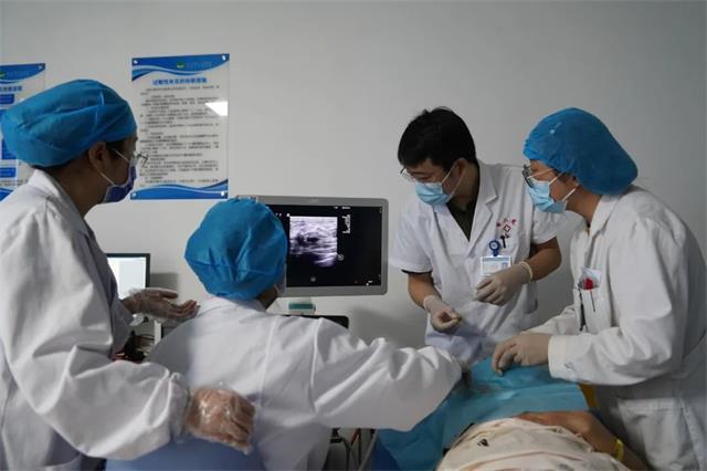 袁鹏正在进行超声引导下乳腺组织定位标记夹植入术。融媒体中心记者 王一川摄