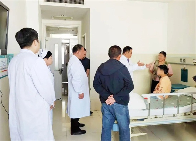 梅伟书记一行前往我院重症医学科,查看了昨日入院的骨伤重症患者的病情,当日下午,为其实施了重大手术。