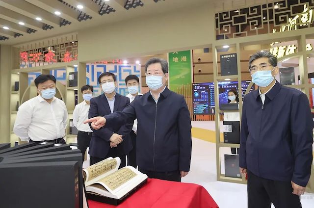 开幕式前,楼阳生等参观了“书香润万家、奋进新时代”主题河南书展。
