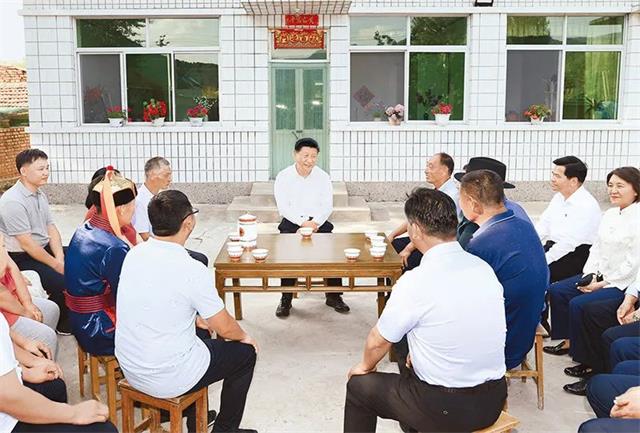 2019年7月15日至16日,中共中央总书记、国家主席、中央军委主席习近平在内蒙古考察并指导开展“不忘初心、牢记使命”主题教育。这是15日下午,习近平在赤峰市喀喇沁旗河南街道马鞍山村村民张国利家,同基层干部群众代表座谈交流。 新华社记者 谢环驰/摄