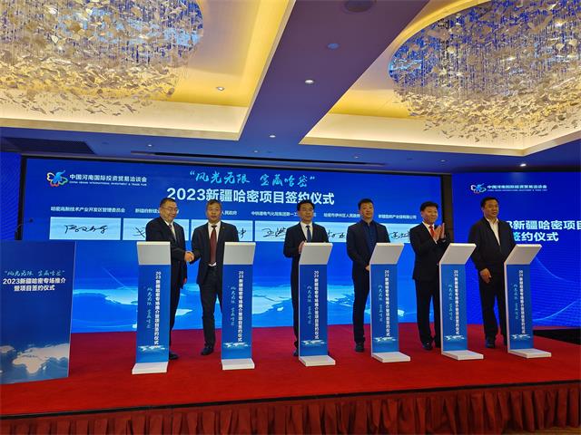 9月27日,2023新疆哈密专场推介暨项目签约仪式在郑州隆重举行。现场签定招商引资项目6个,签约总金额61.55亿元,涉及氢能开发利用、新材料、装备制造、现代物流产业等领域。