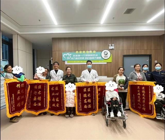 儿童康复科医务人员收到了哈密家庭共同送来的锦旗